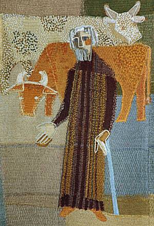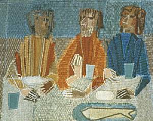 das grosse Gastmahl, Lukas 14, 16-24 - 3.5 x 7.2 m, Nach Kirchenrenovierung im Herbst 2004 wieder aufgehängt Behang vorne an zentraler Stelle, über braunem Holztäfer. Befestigung auf eingemauerten Trägern Adressen: Gemeinde Frau Süsstrunk, Di 9-11, Tel: 052 317 26 45, 8450 Andelfingen |