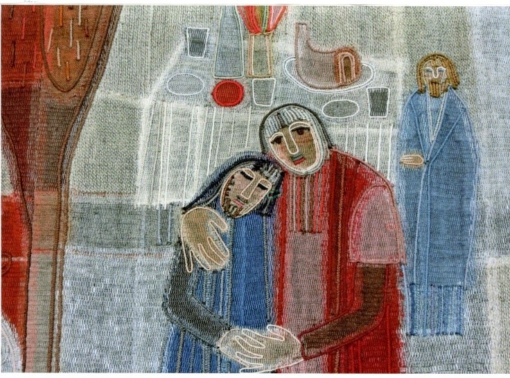 Ruth von Fischer hat über 20 grosse Wandteppiche für Kirchen und öffentliche Gebäude entworfen und mit Frauengruppen realisiert. Dazu wurden zwei Ausschnitte von Szenen aus dem Wandteppich "Der verlorene Sohn" (1982) von Grosshöchstetten reproduziert, sowie aus dem Paulusteppich im Kirchgemeindehaus Paulus, Bern (1984) und jenem der Werke der Barmherzigkeit von Urdorf/ZH (1987).